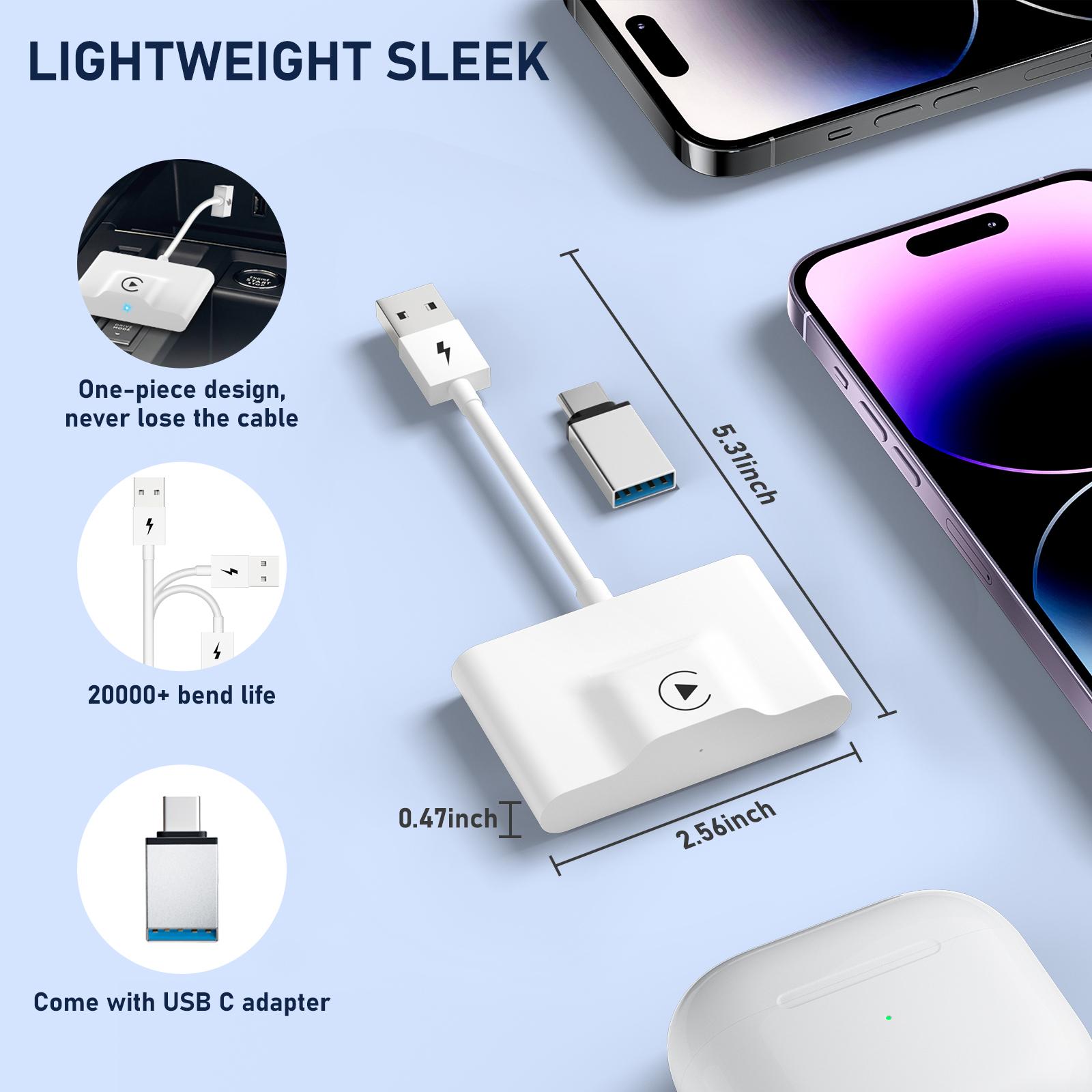 CarPlay Wireless Adapter for Factory Wired CarPlay Upgrade Plug & Play Wireless CarPlay Dongle Converts Wired to Wireless Fast and Easy Use Compatible with Cars from 2015 & iPhone iOS 10+ , White