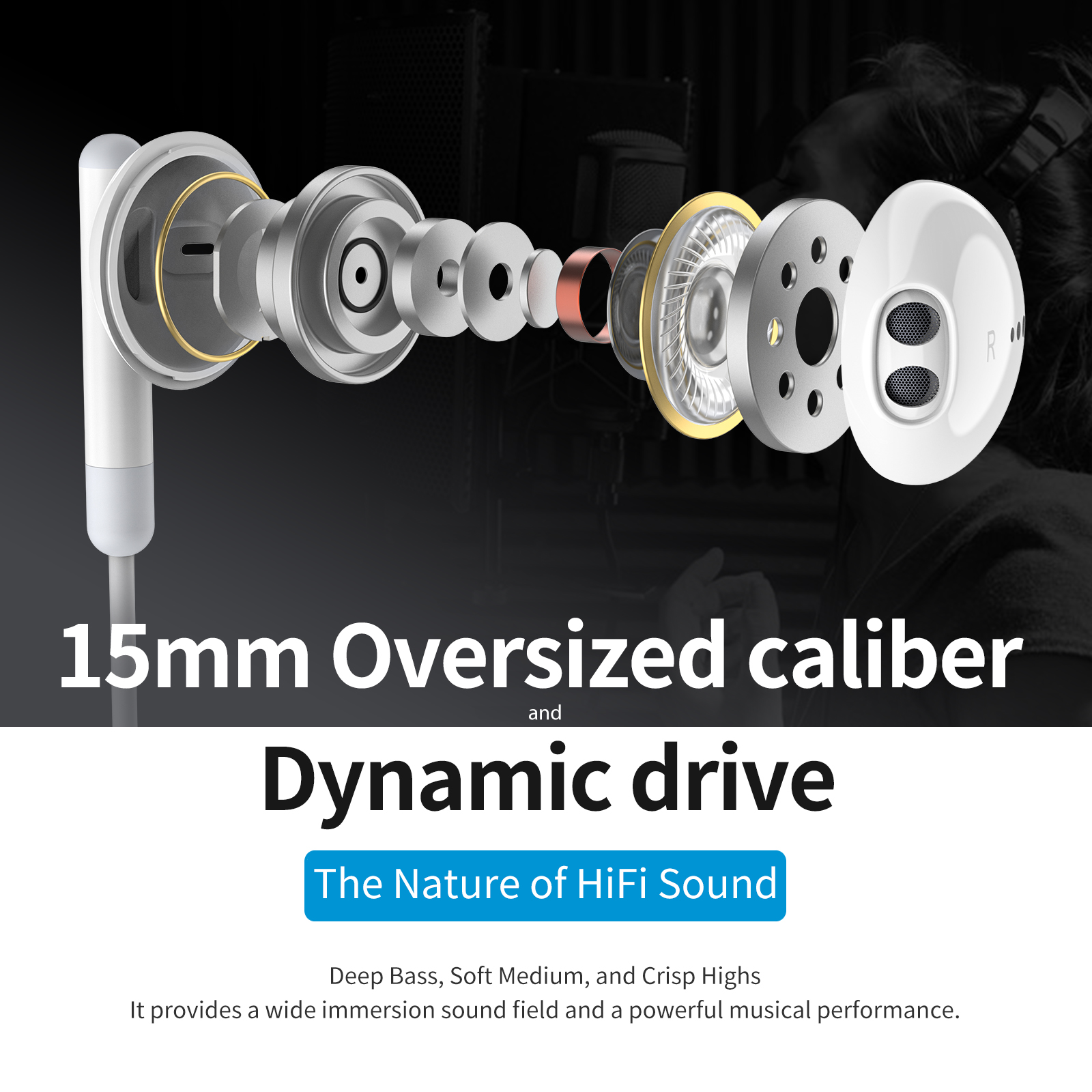 High-Quality 15mm Driver & Superior Sound Performance: These in-ear headphones feature large-diameter 15mm drivers to maximize sound output. Combined with a high-performance driving ring and diaphragm, they deliver powerful bass and clear, bright treble for a pure listening experience.
