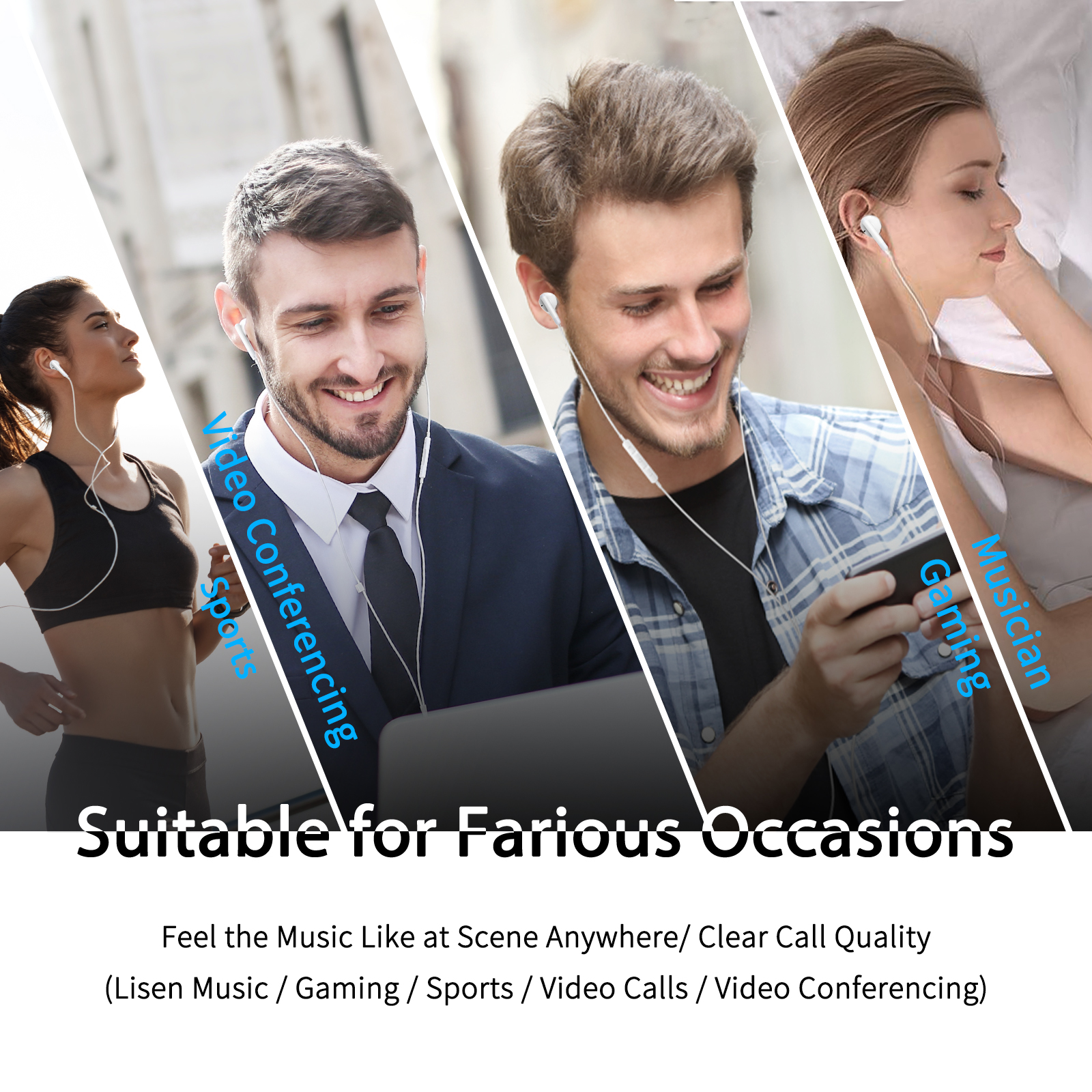 Three-Button Control & HD Microphone with Noise Reduction: Built-in three-button control allows you to play/pause music, answer/end calls, and activate voice assistants such as Siri. The HD microphone with noise reduction supports clear calls, online meetings (Zoom/Skype), gaming, live streaming, and video recording.