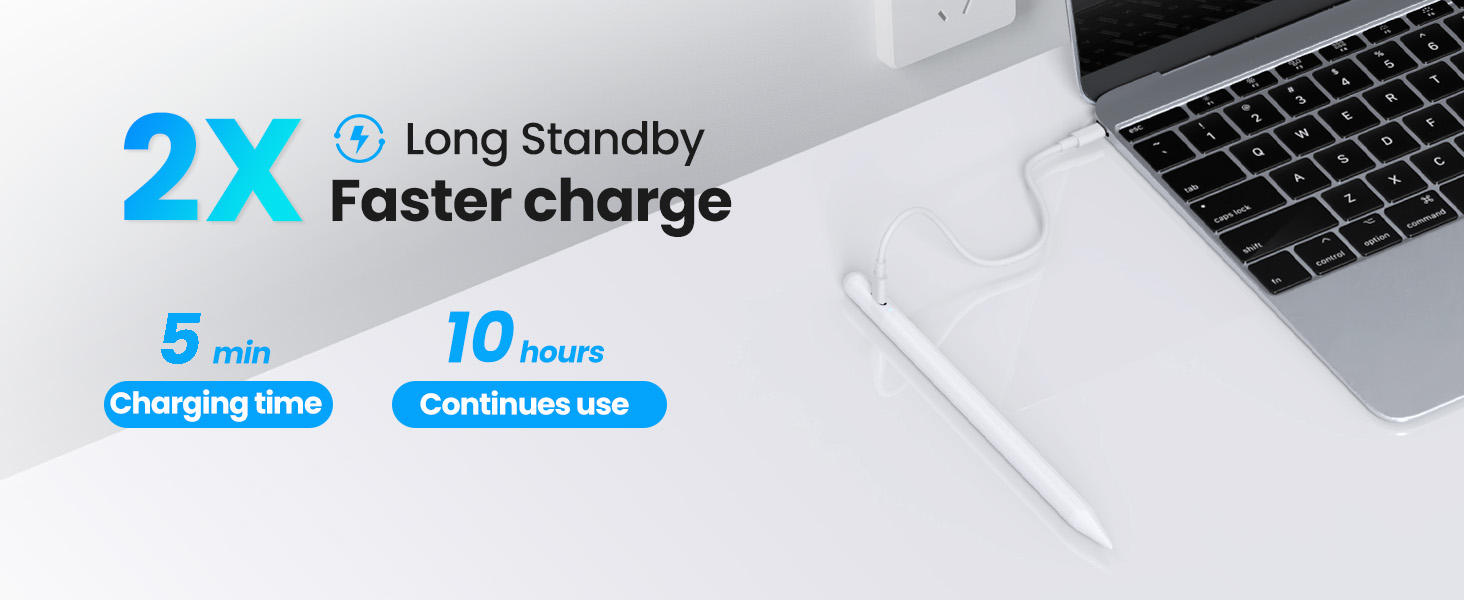 - USB-C 2X Fast Charging: JAMJAKE iPad stylus pen fully charges in 30 minutes and offers up to 10 hours of battery life. In a hurry? Just 5 minutes of charging provides 3 hours of use. Outperforms many brands in both endurance and emergency power capabilities— perfect for frequent and intensive use.