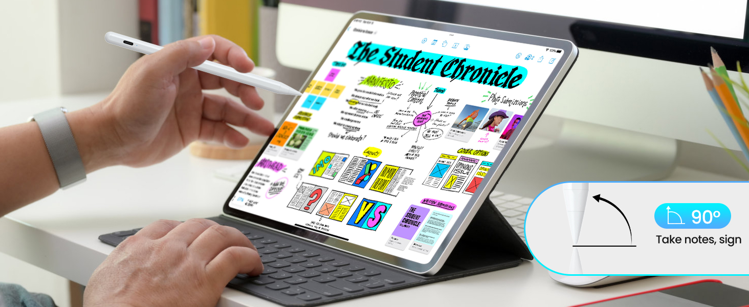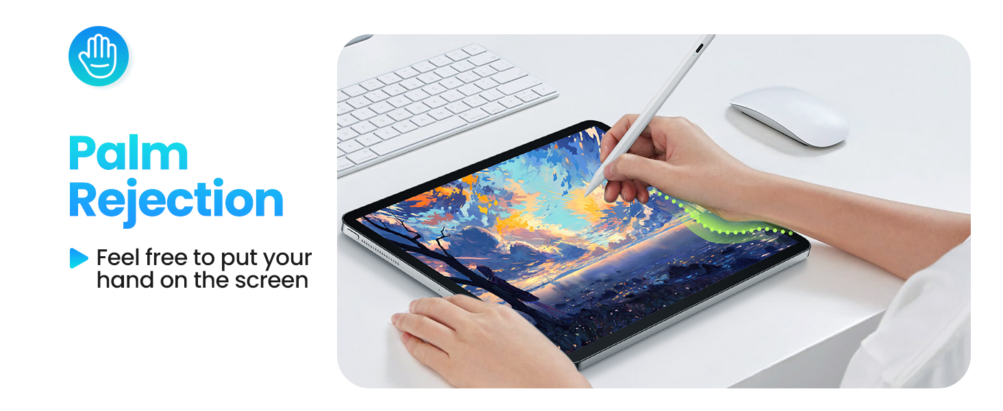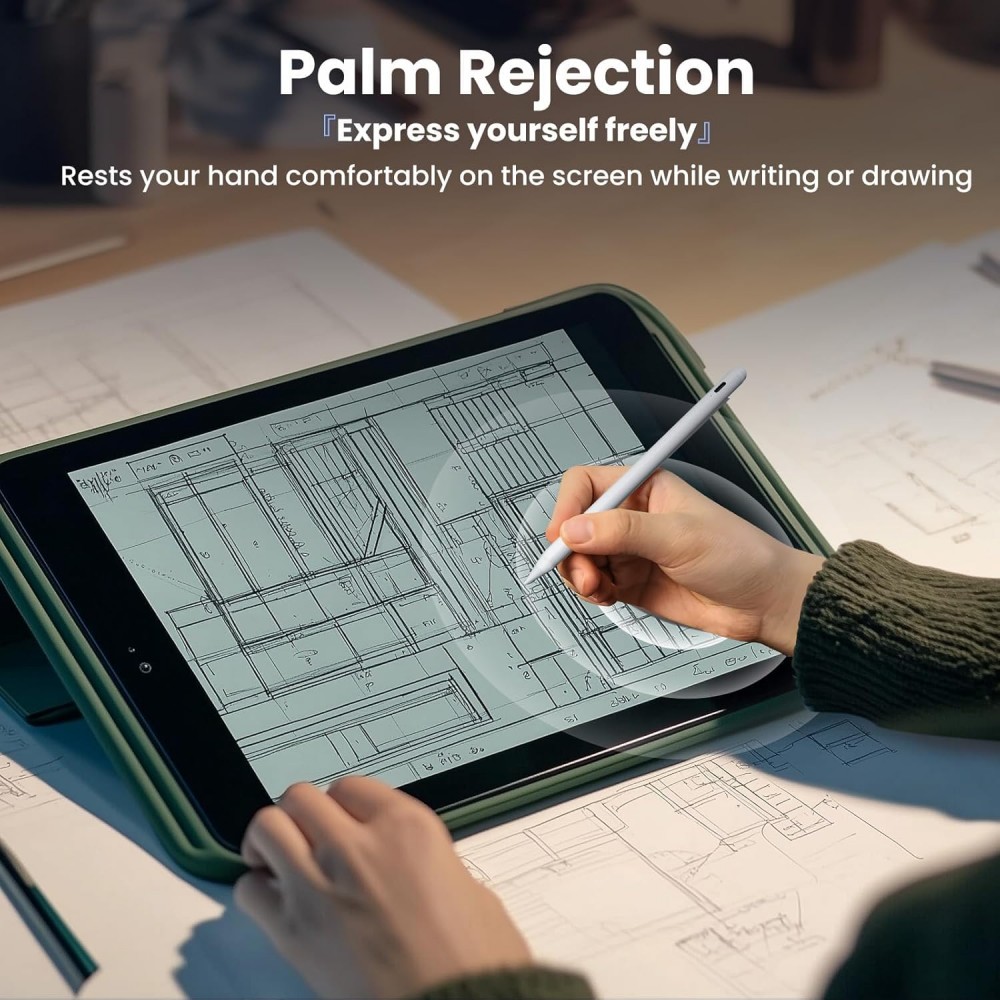 - Palm Rejection for Seamless Writing: JAMJAKE iPad Air pencil features advanced palm rejection tech that accurately distinguishes between hand contact and pen input. Rest your palm naturally on the screen without triggering unwanted actions — enjoy a comfortable, fatigue-free writing and drawing experience even during extended use.