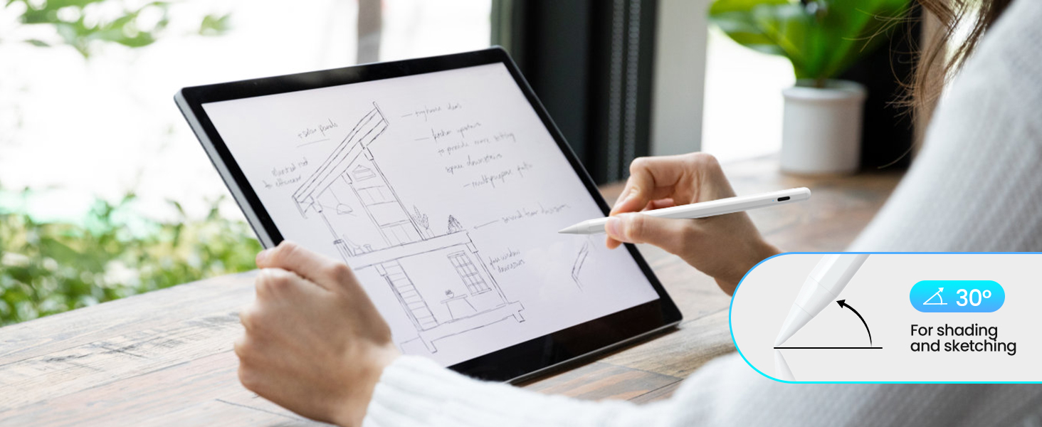 - 0.1mm Pixel Precision & Tilt Sensitivity: With a high-sensitivity 1.5mm tip, this pen for iPad offers near 0.1mm precision for superior line control. Also supports intelligent tilt recognition — tilt the pen to add shading or vary line thickness, mimicking the behavior of real drawing tools.
