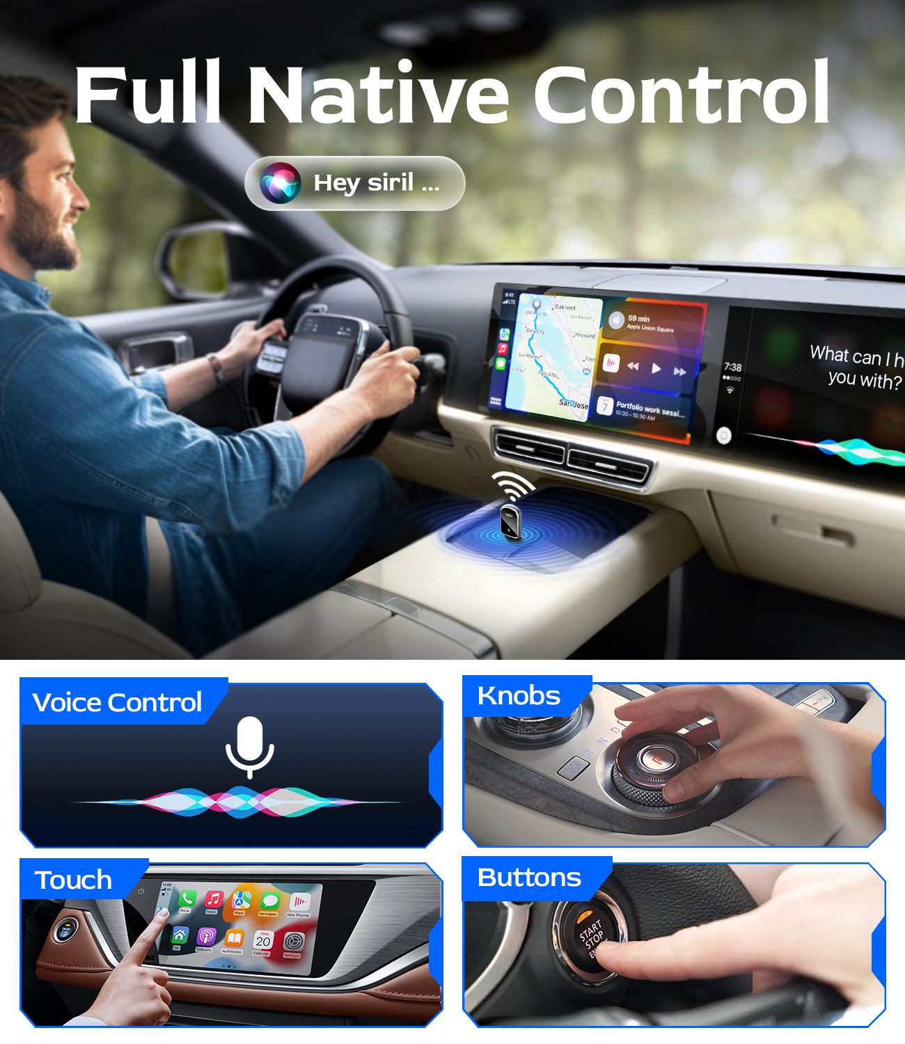 【Wireless Apple CarPlay Adapter】Upgrade your factory wired Apple CarPlay system to wireless with this latest adapter. Enjoy a faster and more seamless connection, allowing you to use your favorite CarPlay features without plugging in your phone. Navigate, make calls, listen to music, use Siri, and access apps effortlessly while keeping full control through your car’s original system.