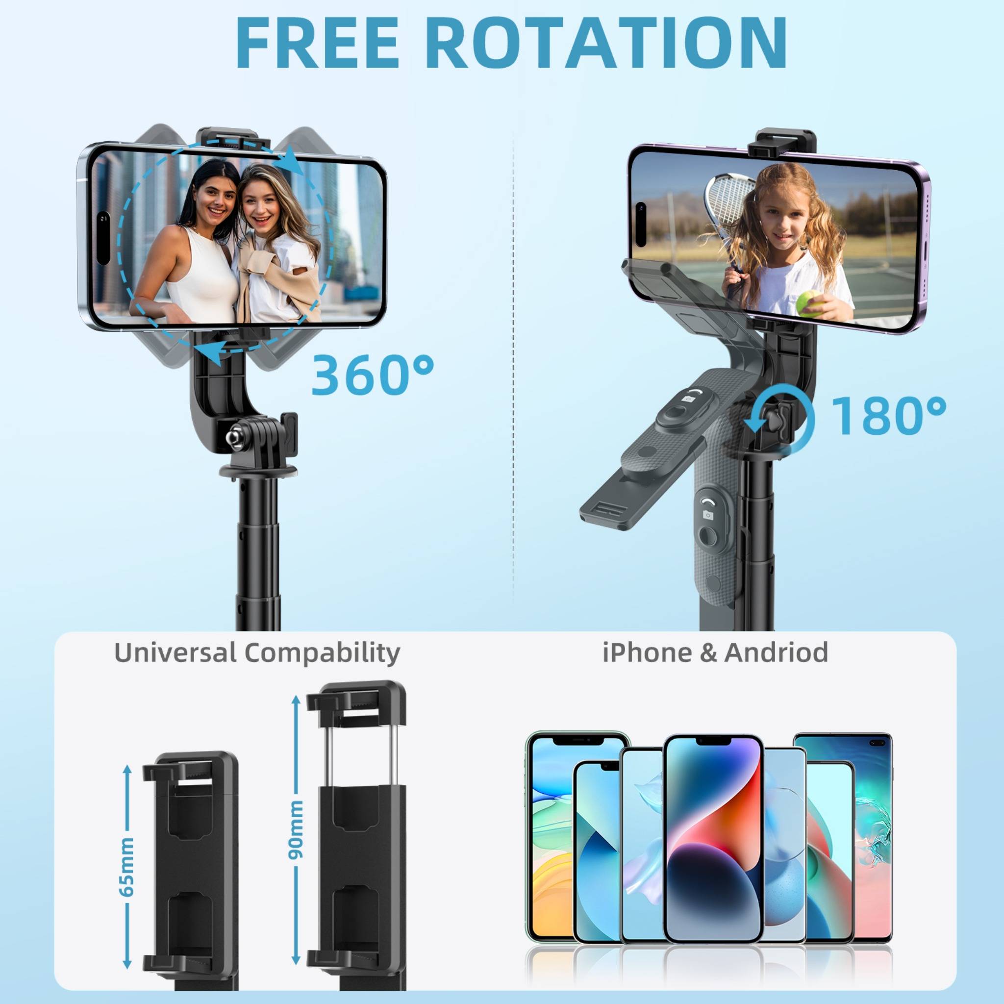 【Wide Angle & Extendable up to 40 Inches】The selfie stick supports 180° neck rotation and 360° phone holder rotation, allowing you to explore more creative shooting angles. Easily extendable up to 40 inches for wider shots without twisting or locking issues.