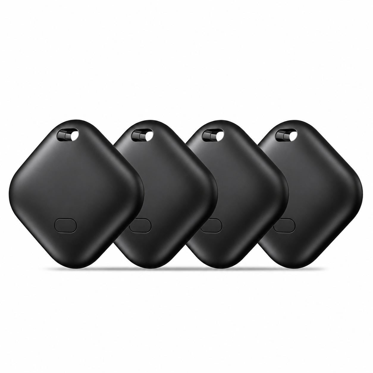 Smart Tracker Tag Item Finder, Keys Finder and Item Locator with sound, Compatible with Apple Find My APP (iOS Only), Replaceable Battery, Keys Tracking Tag for Bags, Wallets, Luggage, Backpacks (4pack, Black)