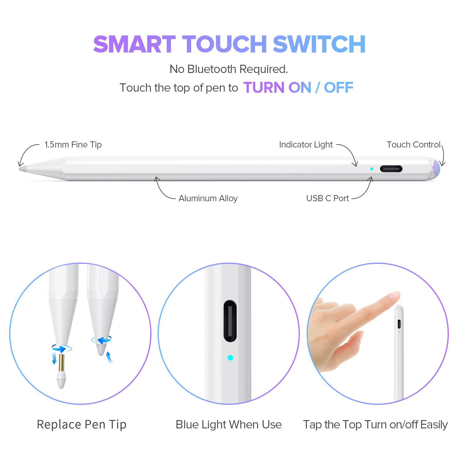 - 【Precise and Smooth】1.5mm pen tip can replace your finger to execute finer instructions, it easy to install and tear off the tips on your stylus pen without any tool. No lag/offset/breaking point!Compared with the ordinary stylus pen, it has higher sensitivity, more accurate signal, more comfortable hand. Not easy to break!【 Note 】The stylus pen no pressure-sensitive design.