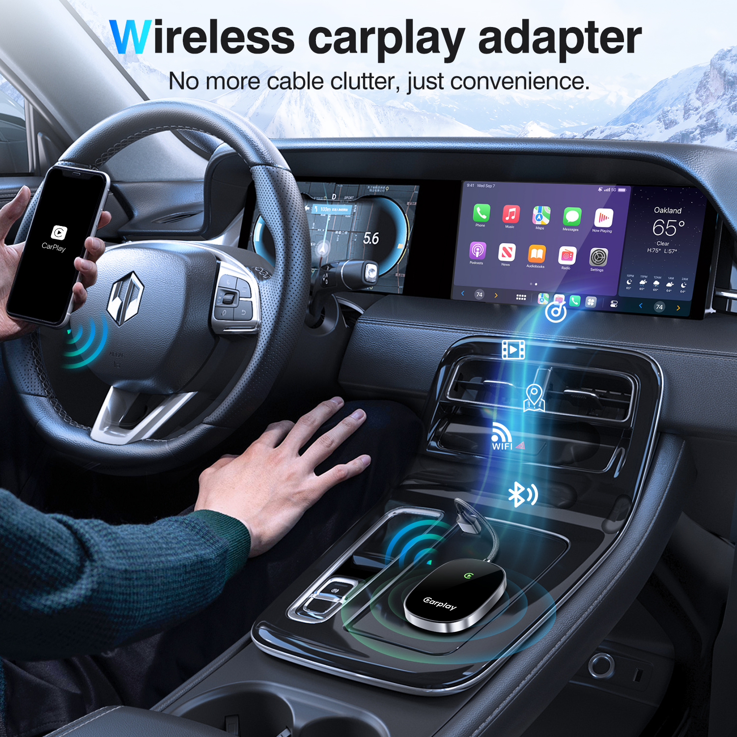 -Easily convert factory wired Apple CarPlay into a wireless system. No more plugging in your iPhone—start your car and enjoy instant access to all CarPlay functions.
