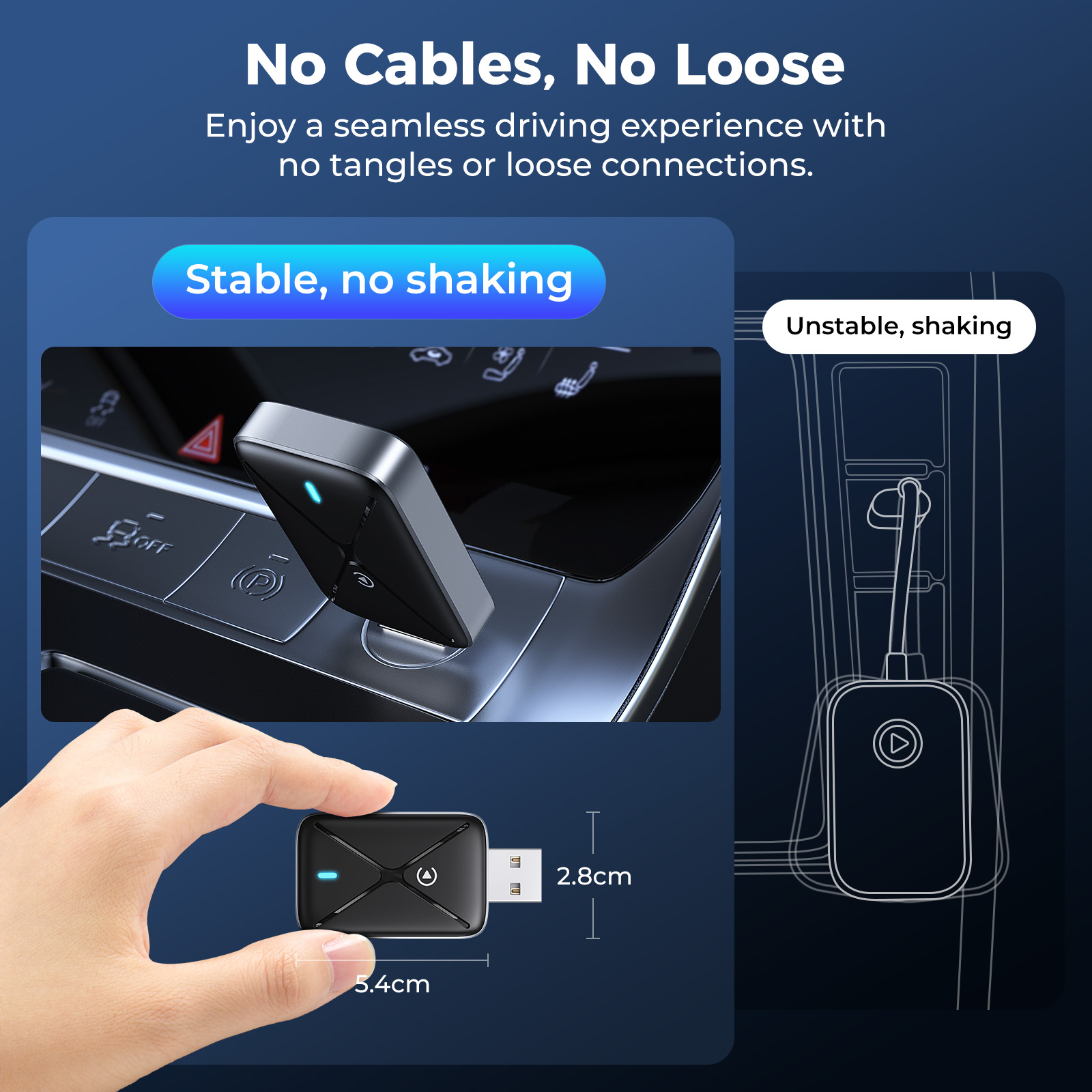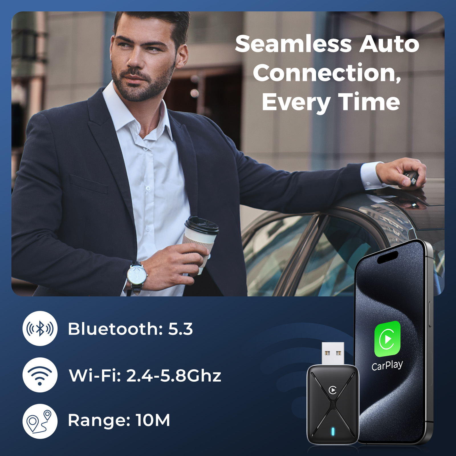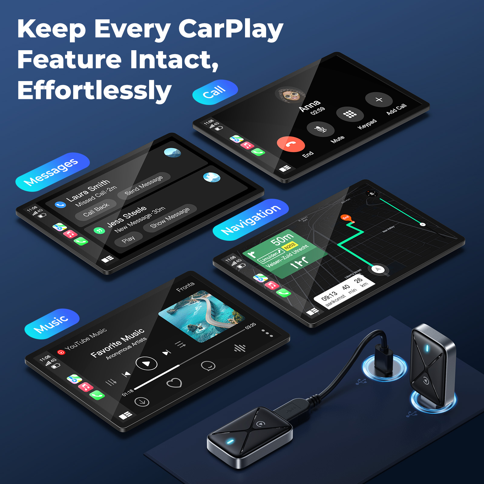 Easily transform your factory wired Apple CarPlay into a wireless system. No more plugging in every time you drive—enjoy full CarPlay functionality automatically as soon as you start your car.
