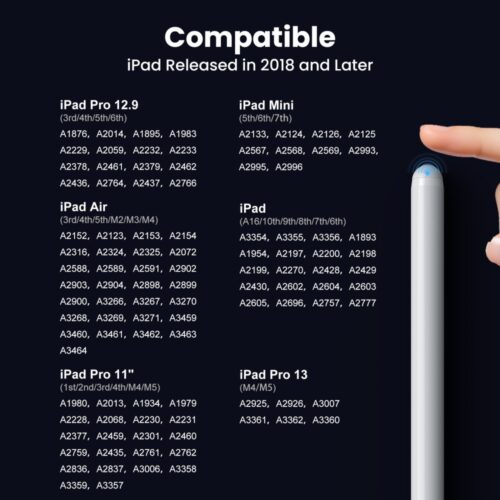 Stylus Pen Compatible with Apple iPad (2018 and Later), Palm Rejection, Tilting Detection, Magnetic Adsorption for iPad Pro (11/12.9 Inch), iPad 6/7/8th Gen, iPad Air 3rd/4th Gen, iPad Mini 5th Gen